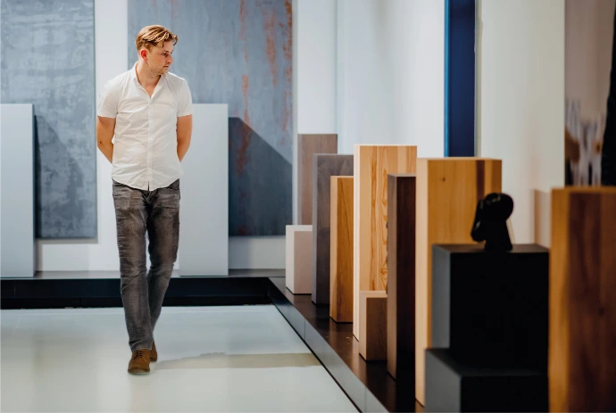 Om onze klanten de beste kwaliteit en levertijd te kunnen garanderen, beheren wij het transport én de productie van onze sokkels hier in eigen huis. Ons brede assortiment sokkels wordt zorgvuldig gecreëerd door echte vakmensen. Van ontwerp tot bouw en afwerking; dit specialistische team levert altijd het perfecte resultaat op maat voor jouw project of winkel in binnen en buitenland.