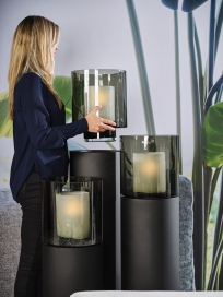 Deze ronde sokkel, vervaardigd van metaal met een zwarte laklaag, geeft aan iedere ruimte een tijdloze sfeer.